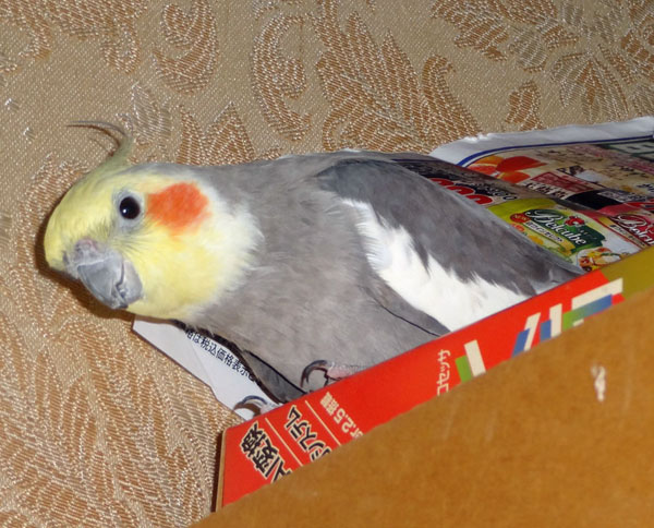 そして、アルマーニのチョコの送り主は、横浜のアーク・エンジェルまろん嬢からです。まろん様は芳紀12才のお嬢様で、輝く白いボディは、ノーマルのうちの子とツーショットにしたらきっと息をのむくらいお似合いであると思われます。しかし、手乗り鳥同士のカップリングはおとろしく難しいので、おそらくは夢見てるうちが花でしょう。