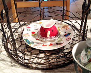 インコケーキは鳥かご型のおかもちに入ってテーブルまでとどけられます。カップもソーサーもみな鳥柄、インコグッズをおくスペースもあり、小鳥すきにはたまらない空間です。私はオープン三日目にいきましたが、知らない人どうしが鳥を介しておしゃべりをはじめたり、鳥のしぐさに笑ったり、なごやかな空間です。客はみな鳥飼いの人たちですね。