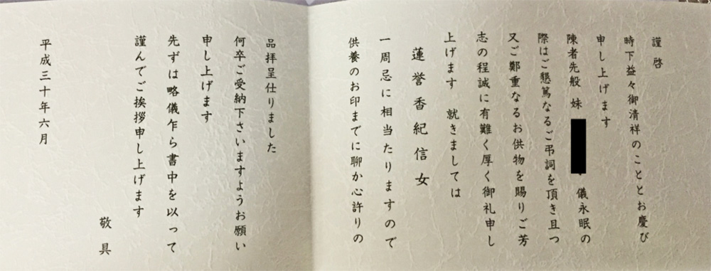 この日、一年前ごろう様(初代)が私の手の中で動かなくなった11時45分、私はグヒヤサマージャの生起法を唱え始めた。それが終盤にさしかかった正午を少しすぎた時、荷物が届いた。見ると差出人は見知らぬ方で最近誰の葬儀にも参加していないのに不祝儀の紙包みである。覚えがないが宛名には私の名前が書かれている。しばらく考えるうちに思い出した。この方はFNさんのお兄さんだ。