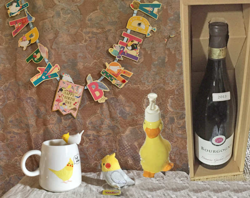 しかし、おめでとうメッセージに含まれるポジティブパワーは私の中に一年前とはちがう柔らかな気持ちを生み出してくれる。また、ゼミ生たち(Wくん、Rちゃん、E子ちゃん)もあくび母さんからも誕生日を外して小鳥グッズのプレゼントをいただくにつれ、周囲に気を遣わせてしまっているダメ人間な気がしてきた。みなさん、ごめんなさい、そしてありがとうございました。