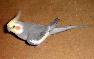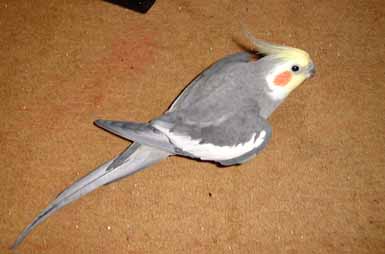 ぼくたちオカメインコは、ゴキゲンのときには、こうして羽が強くクロスして (ふだんは交差しない)、羽がふくっともちあがります。