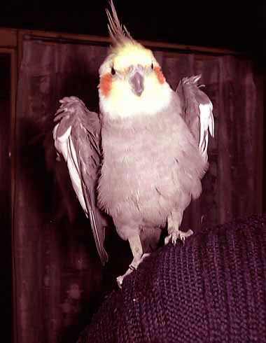 「季節のない街に生まれ〜」たにもかかわらず、今、僕は春の換毛中です。去年の今頃、女の子模様の雛毛が抜けて (子供の頃は男の子も女の子模様なの)、男の子模様の羽の色にかわった時、ママはもう生えてこない女の子模様の雛毛を惜しんで、抜け羽をコレクトしていました。ここまでくると病気だとまわりの人が言っているのをきいたことがあります。僕の羽は下羽も上羽もみっちりふわふわで、冠毛の下にだってパゲはないんだよ。