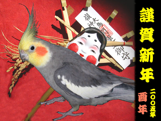 今年のこのイヤな流れを断ち切り、福を呼びこむべく、酉の市で買った大鳥神社の熊手をバックにしてごろうちゃんの厄払いご真影を作ってみた。折しも来年は酉年。オカメ熊手で福を我が家に呼びこみ、来年こそは笑い通す!!(*ちなみに、我が家の今年の年賀状は↓とは別ヴァージョンのごろうちゃん年賀状です!)