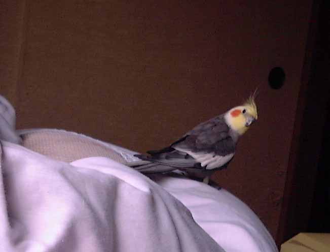 そこで、今朝。ごろうちゃんはいつものようにパパの肩にのって階段をおりていた。彼はゴキゲンであった。しかし、階段のふもとで彼が目にしたものは・・・・・逆光の中にそびえたつ奇怪な物体であった (電球が切れているため玄関が暗く、外からの光のみだった)。彼はぎょぇっと悲鳴をあげると迷わず二階の母のもとに逃げた。しかし怠け者の母はまだ寝ていた。困ったごろうちゃんは閉まった戸の前で迂回するとまっくらな三畳間にとびこみ・・・。すみません。これからは気をつけます。