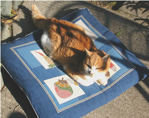 七時に下におりてきたら、るりが起き出してきて、風呂場の水場にいって、水場の前でへたりこむ。そして、それを繰り返す。どうも、衰弱がきわまって元気な頃にやっていた生活パターンをよれよれの体で無意識にたどっているかのように見える。十時までに二回外にでて、二回風呂場の水場にいった。人間の側がいやだから外に出ようと徘徊するのかと、勝手口の前に薄暗い死に場所をつくってみたが、どういうわけか、そこは気に入らないと階段の下まで歩いたので、今度は二階の私の部屋に座布団をしいてみると、そこでは落ち着いて午後三時までそこにいてくれる。途中自分で水を飲み、三時頃少なめの流動食をあげると、また外にでたがる。おしっこ場につれていったら、瓶のふちにあしをかけようととするので、水がほしいのかと水をあげるも飲まず、そのままふらふらと門の方へいきでていこうとするので、門を閉める。ところが木戸の下からくぐって道路にでようとするので、それをとめて、しばらくそこにいさせて、そのあと、門の中までつれてきて、座布団をコンクリの上においたら今度は自分からのってきた。この座布団は最近るりの担架がわりにつかっているもので、これに乗るということは運んでくれという意思表示である。夫はこれを見て、るりはぜんぜんぼけていないのではないかという。しばらく二階の窓際の座布団の上にいて、しばらくしていってみたら、私のベッドの上にのっていた。そして、九時頃流動食をのませたら、ぜんぜん反応がなく、何か危い感じがする。どうも胃腸が動いていなかったらしく、しばらくしていってみたら、おしっこともウンチともつかない黄色い液体をじゅうたんにこぼしていた。今日は満月で干潮は午後十一時半。干潮の時に人はよく死ぬ。